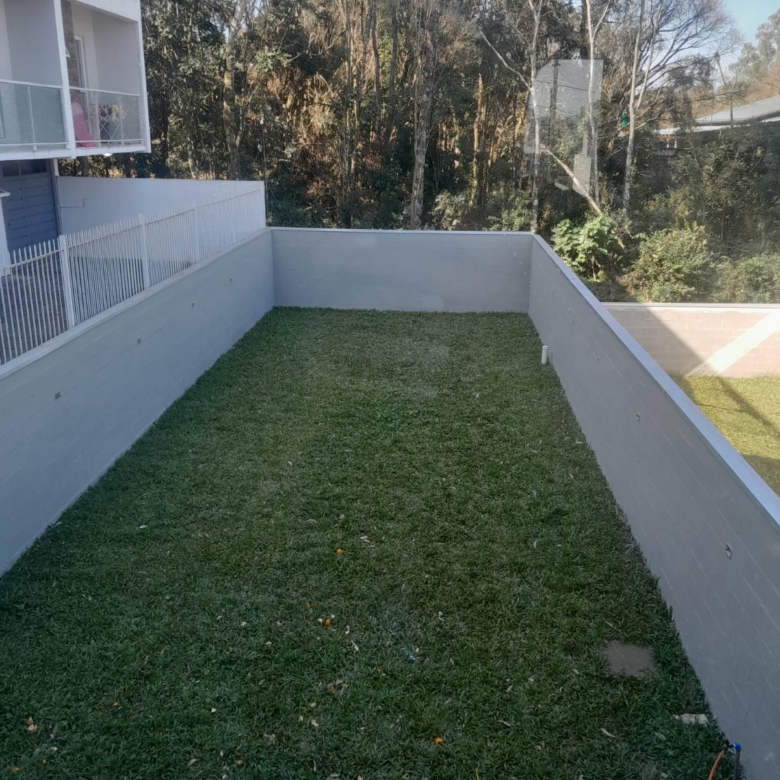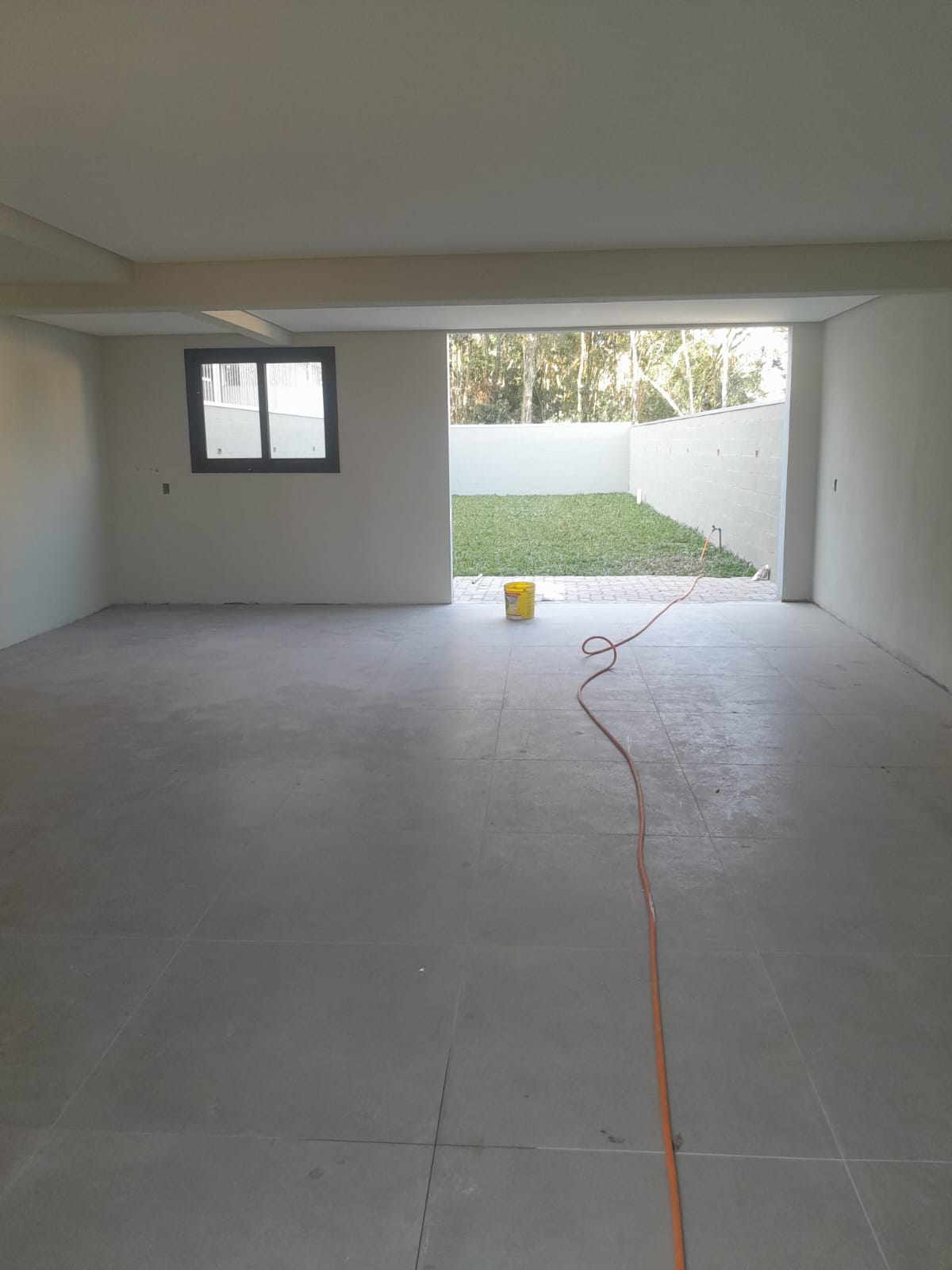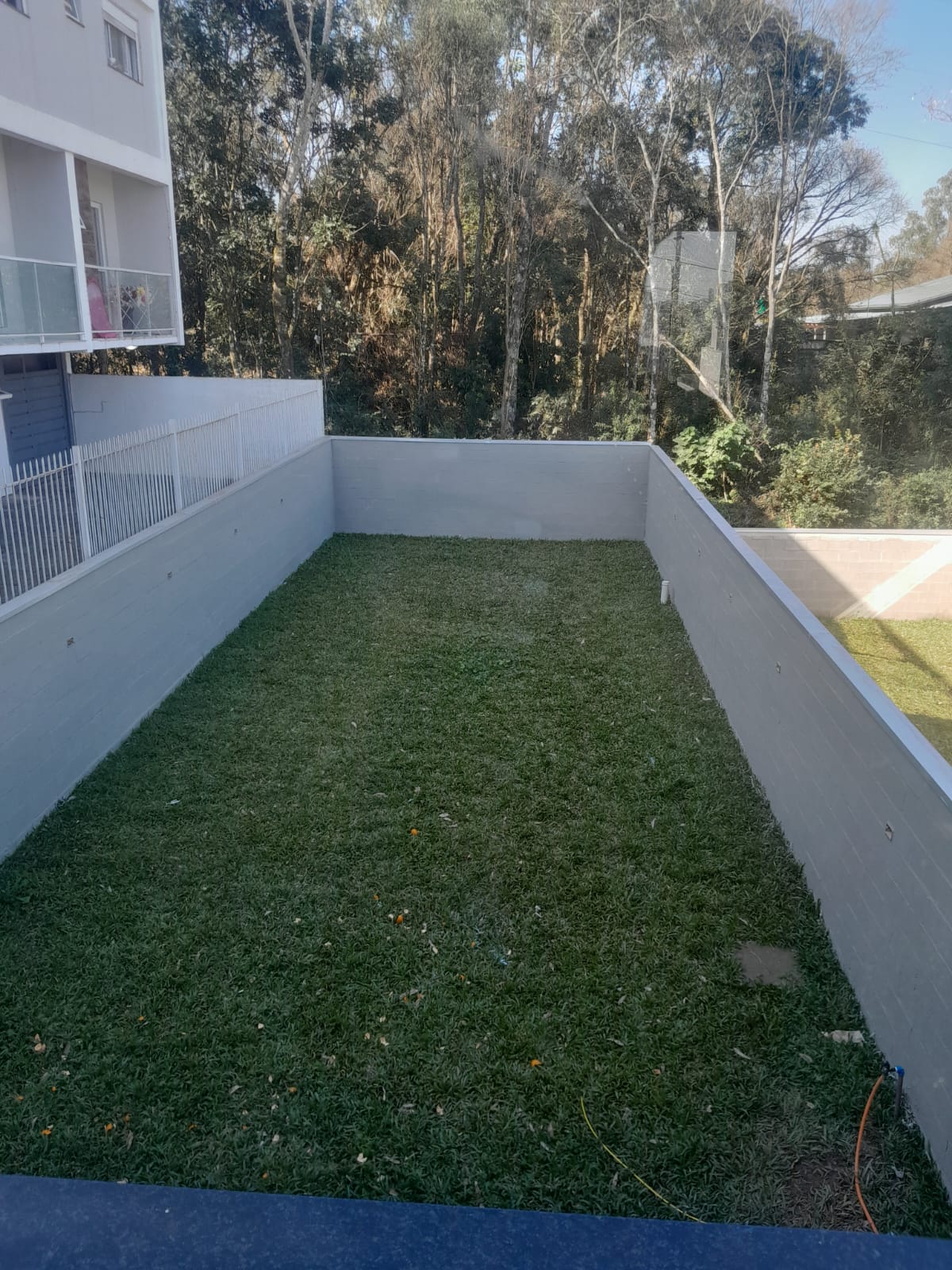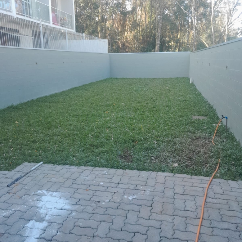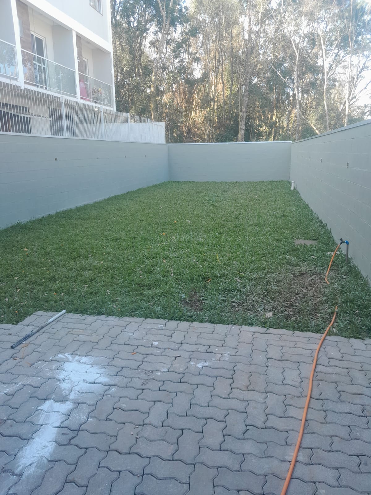 amplo pátio com gramado nos fundos.
