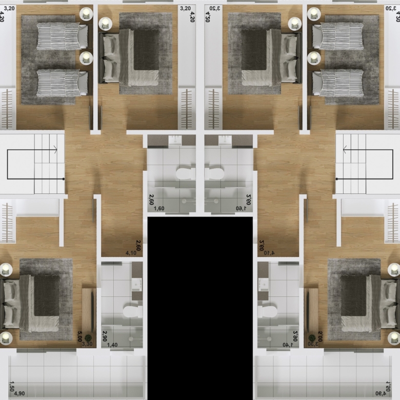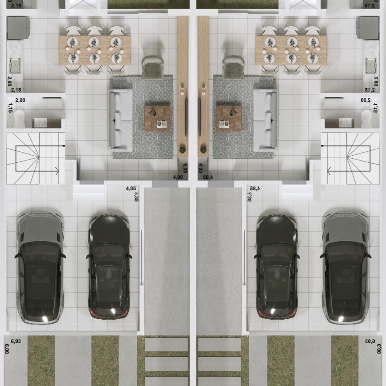 Pátio na frente com 40,00m², pátio nos fundos com 26,35m²